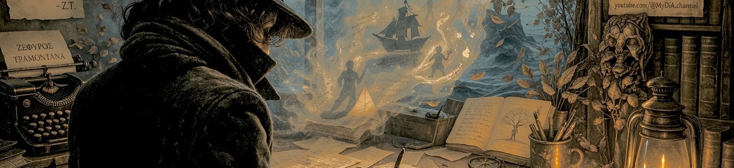 Πάντως, ο Ζέφυρος επιμένει να γράφει με ψευδώνυμο - φυσικά, το «Ζέφυρος Τραμοντάνα» δεν είναι το όνομά του - ακόμη και τις ιστορίες που δεν σκοπεύει να δημοσιεύσει. Θέλει να παραμένει ανώνυμος ακόμη και στο συρτάρι όπου στοιβάζει τα γραπτά του.