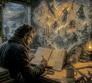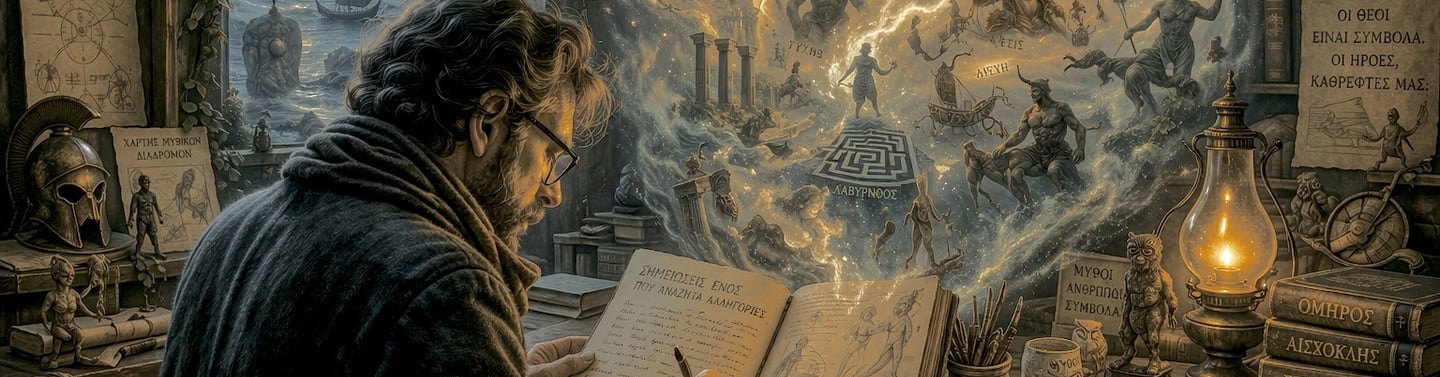 Επιμένει πως γράφει, αλλά δεν είναι συγγραφέας. Δηλώνει ταξιδιώτης. Ένας περιηγητής που εξερευνά τον κόσμο της μυθολογίας και γράφει με μολύβι, για να μπορεί να σβήνει εύκολα.